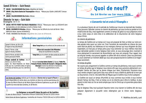 Article publié par response.text()) .then(text => { html = text showLoading = false; })" class="flex justify-center animate-grow-on-hover--small">Secrétariat • Publié le Vendredi 20 février 2026 - 15h36 • 7 visites QdN du 14 fevrier au 1er mars Télécharger 1.5 Mo Télécharger