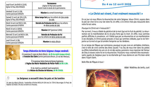 Triduum pascal dans nos paroisses Notre-Dame de Bonne Espérance et Saint Jean du Mont d'Anzin
